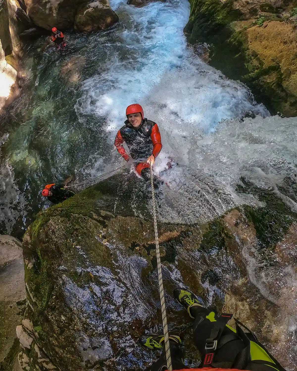 Canyoning (also called "Canyoneering") is the descent of a wild river canyon using a combination of hiking, swimming, jumping, abseiling down waterfalls, and scrambling through natural pools and waterslides. It requires specialist gear — helmets, wetsuits, harnesses, and ropes — all of which we provide. No prior experience is needed. According to Red Bull, canyoning is one of the fastest-growing adventure sports in the world, and Bosnia is quickly becoming one of its top European destinations.